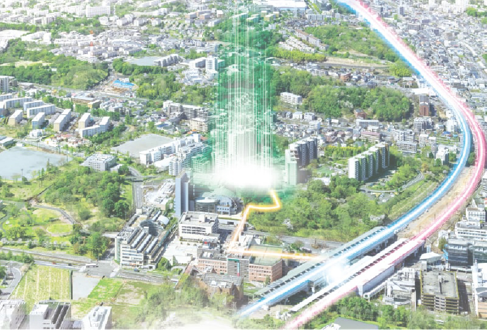 ※掲載の航空写真は2025年4月に撮影したものにCG加工を施したものです。光の柱は現地の位置を表現したもので建物の規模や高さを示すものではありません。